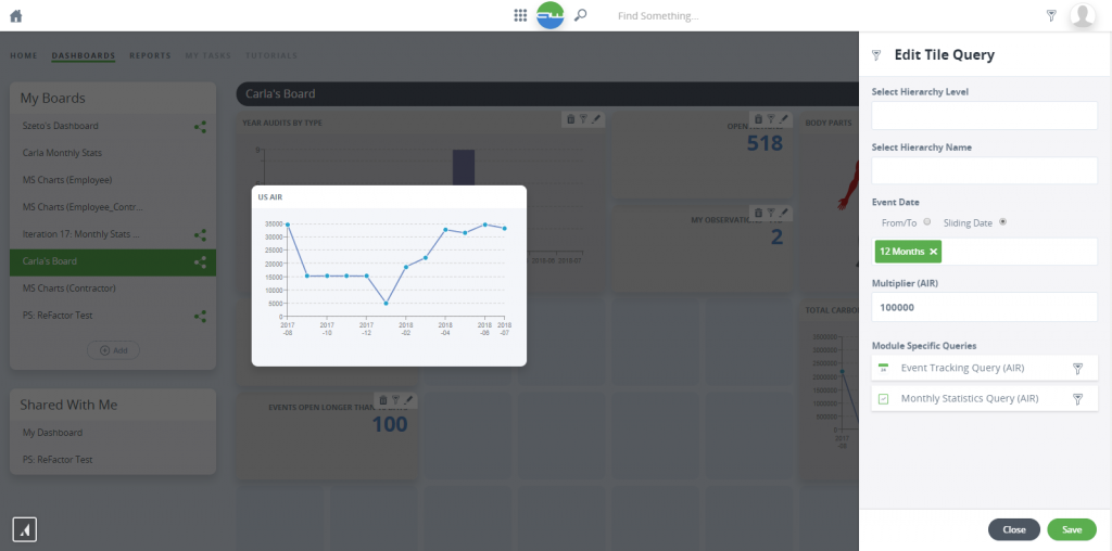 Monthly Stats Chart Filters
