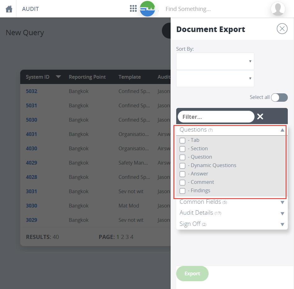 You can now export Audit question data, giving you the